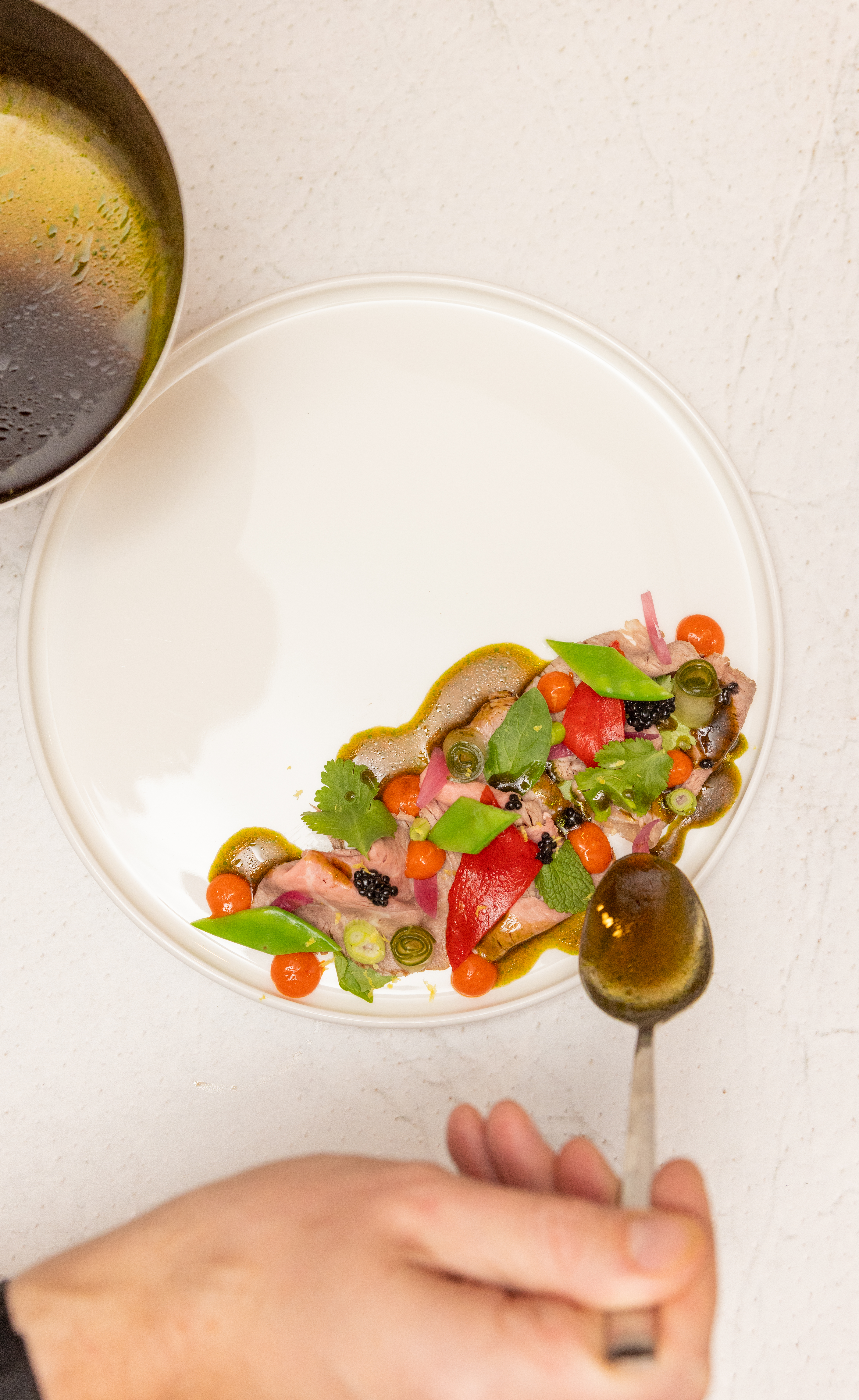 Söl’ring Hof hos Jan- Philipp Berner bød på en uforglemmelig oplevelse. Jan-Philipp er en éner. Mere indlevende menneske skal man lede længe efter! Her fik vi den smukkeste ret med rødbede. Simpelt! Og alligevel så smukt og smagfuldt. Hele middagen var kreeret sammen med Tobias Bätz, som også havde kreeret en lille ham-cheese-bikini, der var elegant, delikat og velsmagende.